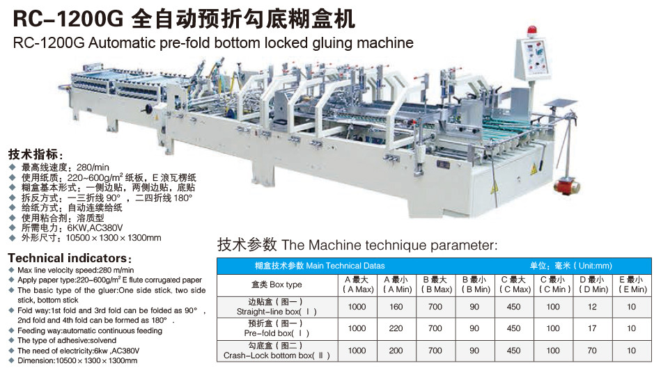 產(chǎn)品名稱: RG-1200G全自動預折勾底糊盒機